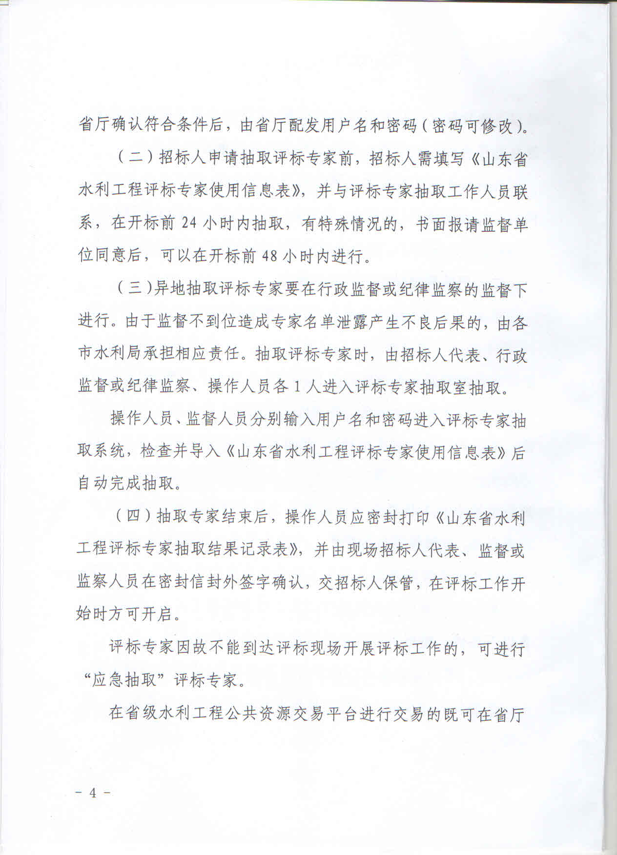 山東省水利廳關(guān)于水利工程進場交易及異地抽取評標專家有關(guān)問題的通知